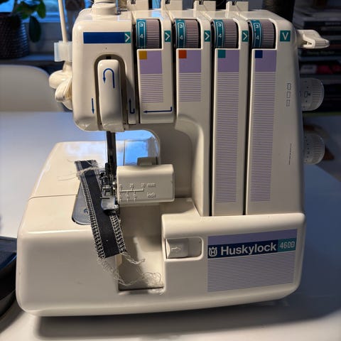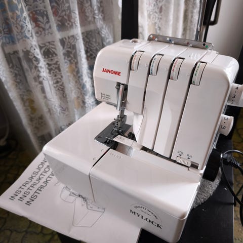 Baby Lock Evolve overlockmaskin i vit färg. Modellen är BLE8W enligt instruktionsboken. Maskinen är avsedd för overlocksömnad och kan användas med flera trådar samtidigt, vilket framgår av trådguiderna och trådspolarna på ovansidan. Den levereras med instruktionsbok och snabbguide för träddning. Passar för olika typer av tyg och sömmar där man vill kanta, sy ihop och ge en ren avslutning på tygkanter. Många fina sömmar