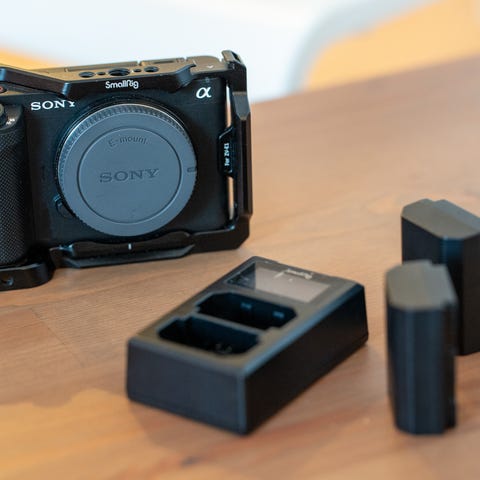 Låda, laddare och axelrem följer givetvis med.