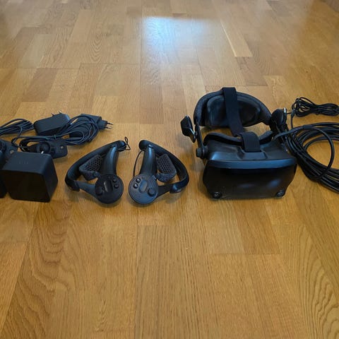 Valve Index VR-headset med tillhörande handkontroller och två basstationer. Allt medföljer och fungerar utan problem utan ena laddaren som saknas. Skriv vid frågor!