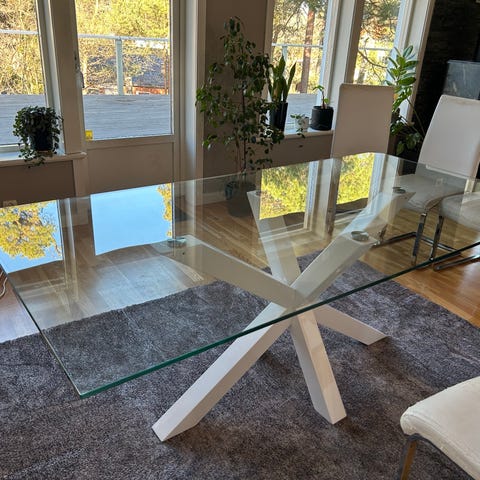 Svart matbord med glas i mitten