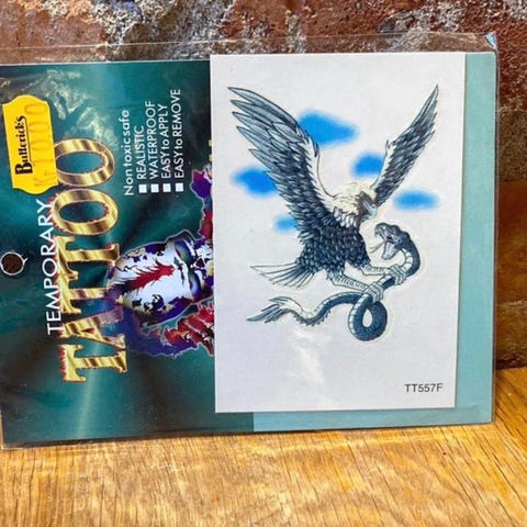 Två coola tillfälliga tatueringar. Nyvara i nyskick. Skull, skalle, döskalle, ödla. Lyser i mörkret. Tatuering. Tillfällig. Glow.