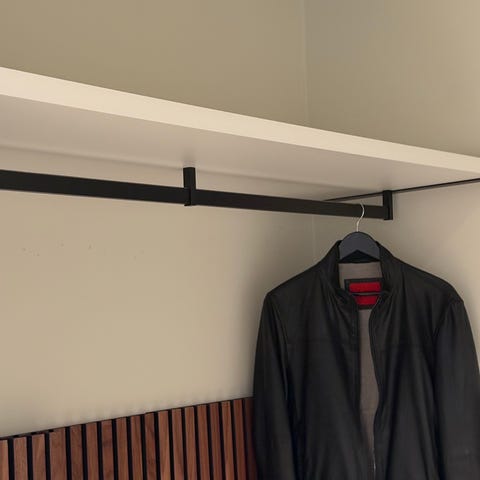 Essem Design skohylla för väggmontering i svart metall. Hyllan har tre horisontella rör som ger plats för flera par skor och hjälper till att hålla hall eller garderob organiserad. Passar för montering på vägg i exempelvis hall, klädkammare eller groventré. Designad av Alfred Homann.