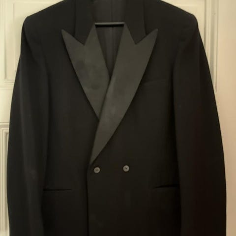 J. Lindeberg smoking kavaj och byxor för herr i storlek 48. Kavajen och byxorna är svart och tillverkad i 100 % ull. Modellen är slim fit med slät framsida, bröstficka och framfickor med lock. Slag och detaljer är i blankare material typiskt för smokingmodell.