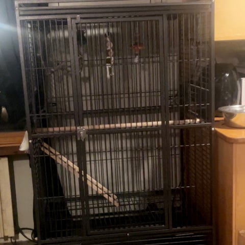 Fågelbur metall grå med stativ