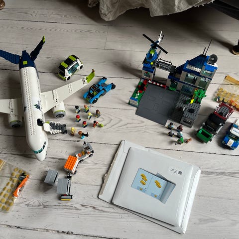 Lego fartyg byggset. Byggklossar som kan användas för att bygga passagerarfartyg liknande de som syns på bilden. Passar för lek, utställning eller som del i en större samling av Lego-byggmodeller.