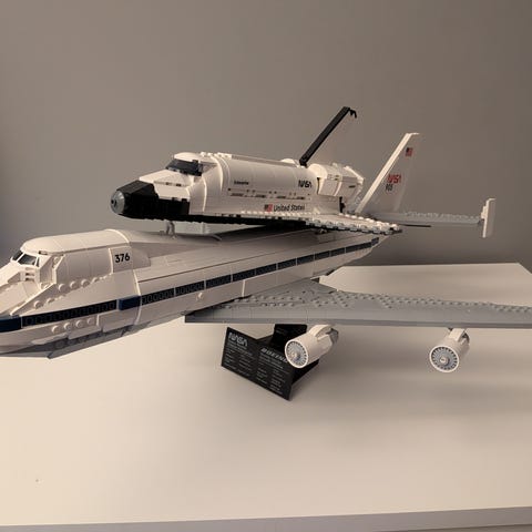 Lego rymdfärja byggset. Består av ett rymdfärje-fordon byggt av Lego-klossar. Passar för lek, utställning eller som del i en större Lego-samling. Exakta antal bitar och originalförpackning framgår inte av uppgifterna.