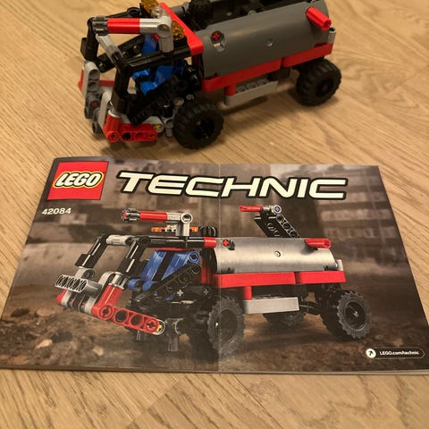 LEGO Technic byggset med fordon. Setet består av tekniska LEGO-delar som kan användas för att bygga olika modeller, bland annat ett bandfordon med skopa och en mindre bil med vinge. Passar för den som vill bygga mer avancerade LEGO-konstruktioner med rörliga delar och tekniska funktioner.