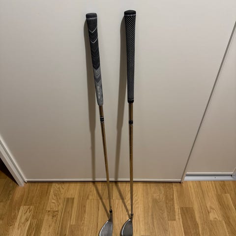 Callaway Opus wedgar 56 och 60 grader. Klubborna är utrustade med Golf Pride Mcc premium grepp. Standard wedge skaft 115 gram. Endast använda en säsong och dem är i väldigt fint skick men normalt slitage. Bounce är 10s i 56 och 8c i 60. Standard herr längd.