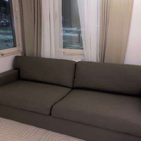 Soffan är i välskick och är tidlös. Soffkläderna går att ta bort och tvättas. Den är i en brunbeige färg. Säljer pågrund av brist av plats. Super bra kvalitet.