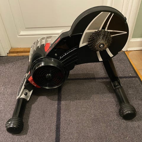 Cykeltrainer Elite turbo muin, sitter en 10 delad kassett på. Kompatibel med Zwift m.m.