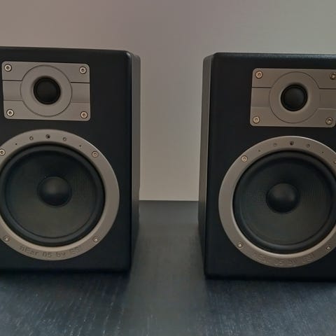 Studiomonitorer, skiner som närfältsmontorer och har ett fantastiskt och ärligt ljud i denna prisklass. Mycket bra skick. Strömkablar medföljer.