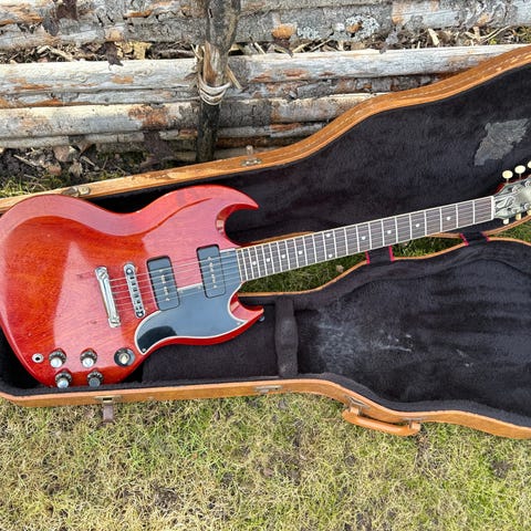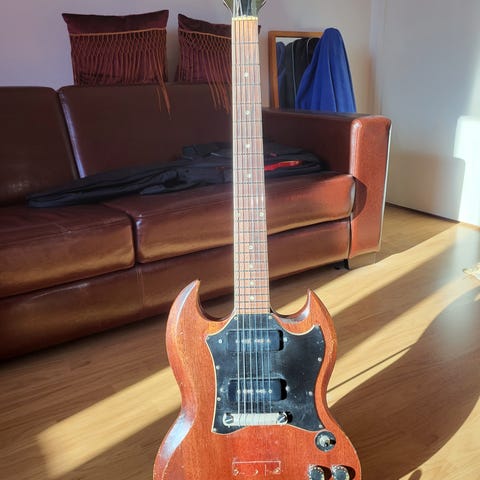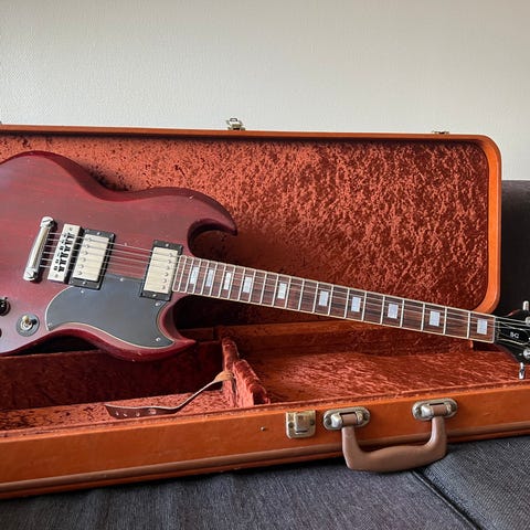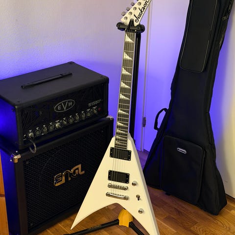 Snyggaste flying v modellen som gibson gjort. Har diverse skavanker och repor (se bilder) då den spelats mycket på. Greppbrädan och banden är dock i väldigt bra skick. Mickar som sitter i är lundgrens black heaven. Lättspelad, inte så tung, låter fantastiskt. Gibson hardcase ingår.