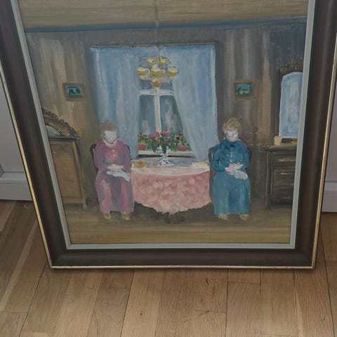 Min vän Anci säljer en fin gammal oljemålning. Hon kqn nås på 070 855 35 11.