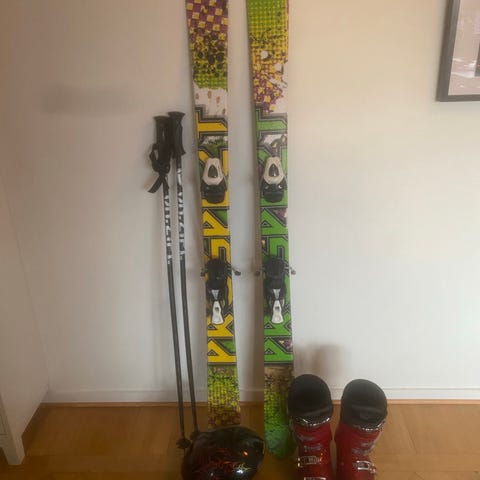 Slalomskida 130 cm komplett med Pjäxa, Stavar och Hjälm