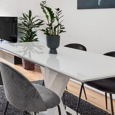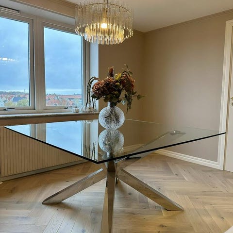 Matbord i metal med svart glasskiva