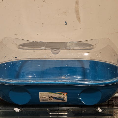 Helt perfekt hamsterbur med utrymme och våningar. Lätt avtagbara delar för enkel rengöring och åtkomst. Den har även ett rör som går längst buren där hamstern kan krypa genom. Vattenflaska, matskål, hjul och litet hus följer med. Skriv gärna om du söker fler tillbehör, har en del som kan fås med till bra pris.