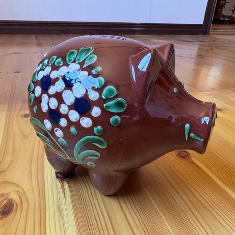 Gullkroken vit Hjo spargris - större modell