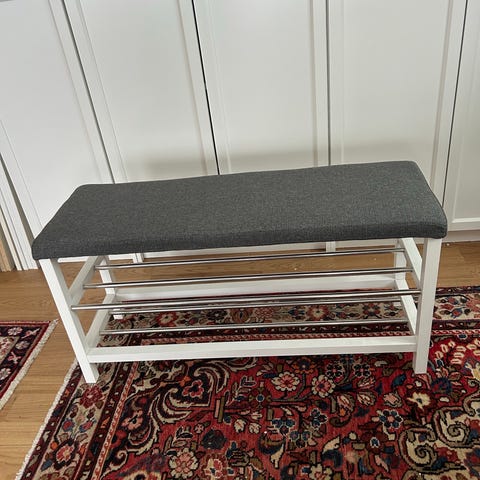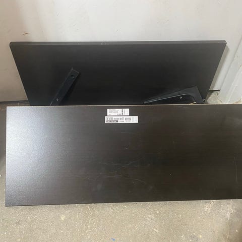 Två vita hyllplan med tillhörande metallfärgad konsol. 150 kr styck.