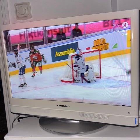 Tv:n har anslutningar på baksidan, bland annat scart och antenningång.