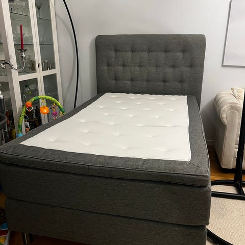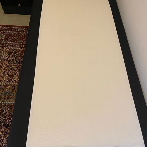 Mio säng i svart utförande. Sängen har en rak, låg ram och är klädd i mörkt tyg. Passar som vuxensäng eller gästsäng i sovrum.