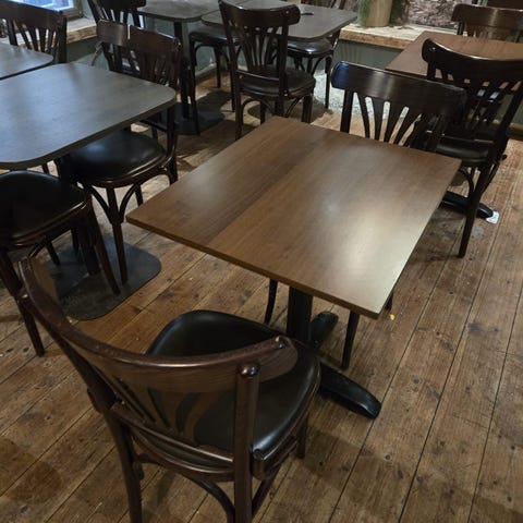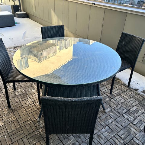Enligt bilder och delvis nytt. Finnes I Bromma. Vita eller svarta stolar.