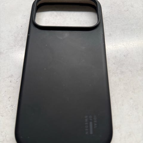 IDEAL OF SWEDEN mobilskal i form av ett svart plånboksfodral. Fodralet har ett avtagbart innerskal för telefonen och flera kortfack på insidan. Utsidan är slät och mörk med diskret logotyp. Fodralet stängs med magnetflik och ger skydd runt kanter och baksida samtidigt som det rymmer kort och eventuella småsedlar.