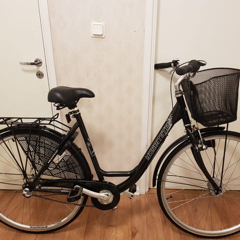 Fin sjuväxlad damcykel [Monark], nyservad och i bra skick. Utrustad med korg, ekerskydd, monterade lysen fram och bak (batteridrivna), hand- och fotbroms, 28” på hjulen och 51 cm på ramen.