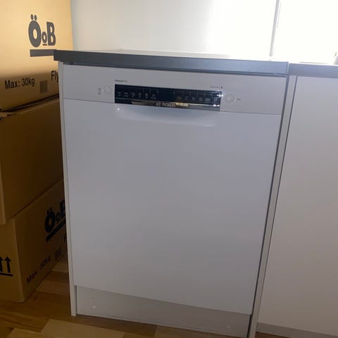 Säljer vår diskmaskin då vi har två stycken. Just denna diskmaskin har använts väldigt lite de senaste åren och visar felkod E4 vilket troligtvis innebär att röret för vattentillförseln behöver rensas. Det bör vara lätt åtgärdat av den kunnige, men jag har inte lagt ner mer tid på det då vi ändå ska byta.