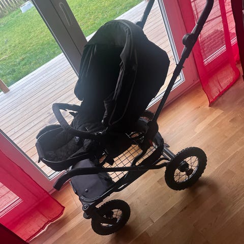 Barnvagn av tyska kvalitetsmärket Teutonia. Vagnen är från 90-talet. Många smarta finesser och enkel att ändra från ligg- till sittvagn.