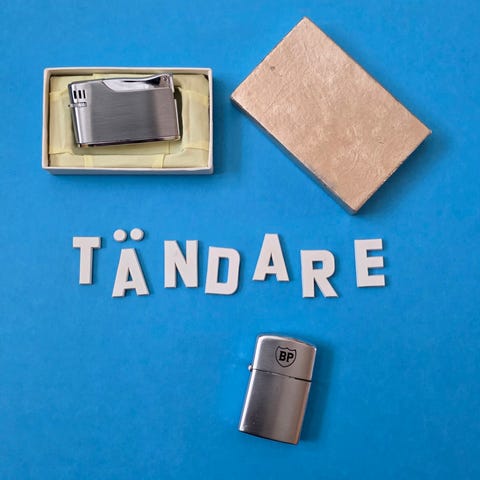 Set med 4 st fickpluntor och cigaretttändare i rostfritt stål. Flera fickpluntor i olika storlekar, både i borstat stål och med ytterhölje i mörk färg. Tändare med märket Marlboro 2 st, 1 st Camel, 1 st John Silver