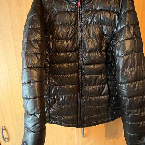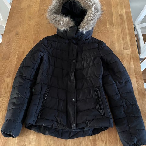 Burberry dunjacka för dam i storlek S. Jackan är svart och vadderad med dun. Insidan har klassiskt rutigt Burberry-foder. Modellen är midjelång med hög krage och knäppning framtill. Passar som ytterplagg under kallare säsonger.