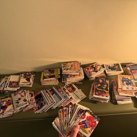Hockey Collectors samlarpärm för hockeykort. Pärmen innehåller plastfickor med olika hockeykort från flera lag och spelare. Kort och pärm är avsedda för förvaring och organisering av samlingar av hockeykort. Antal kort och exakta årgångar framgår inte av uppgifterna och kan kontrolleras vid genombläddring av pärmen.