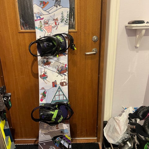 Snowboarden är i fungerande skick. Inga större problem eller repor. Jag fick den av en vän, men säljer den eftersom jag har en nyare bräda. Lägg gärna ett bud, öppen för förhandling.