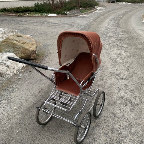 Den är något större än de nyare vagnarna och känns mycket stabil. Ställbart handtag och rejäla lufthjul.