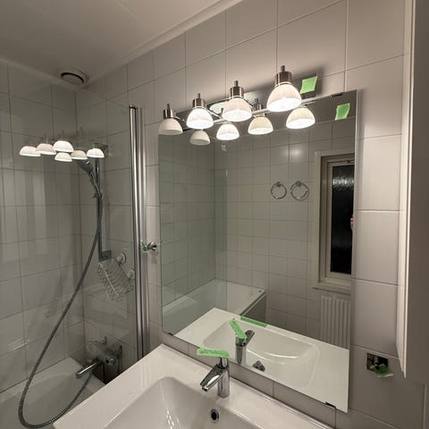 Ikea badrumsskåp högskåp med hyllplan. Vit med spegeldörr.