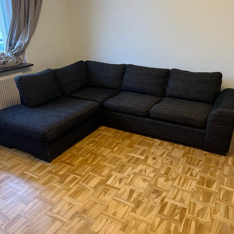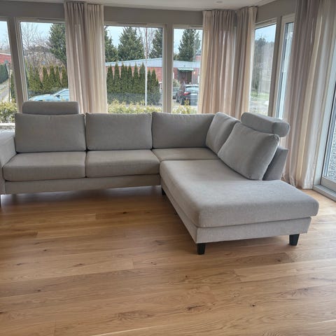 Bredd 3,2m. Längd divan 2,2 och 1,5 m.