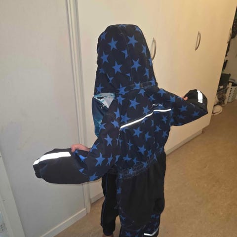 Lite använd varm vinteroverall med pälskrage.