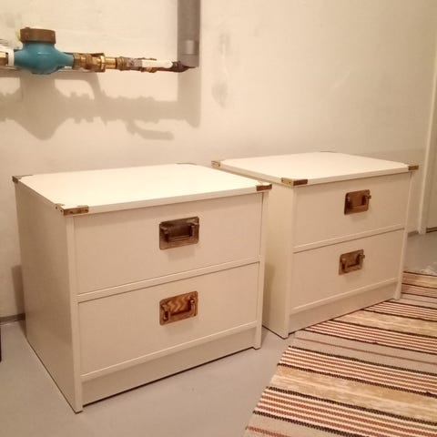 Liten byrå/sängbord i trä med fyra lådor