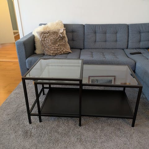 Soffbord i glass med sidobord