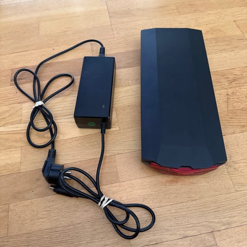 Ecoride batteri till elcykel i svart färg. Avlång modell som monteras på cykelns ram eller pakethållare beroende på cykelmodell. Passar Ecoride-elcyklar som använder denna typ av batteri. Kontrollera alltid kompatibilitet mot din specifika cykelmodell innan användning.