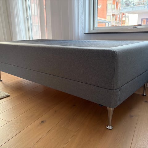 Tempur säng med ställbar botten och madrass. Sängen har en motoriserad, ställbar botten som kan höjas och sänkas vid huvud- och fotända. Madrassen är i Tempur-material med vit överdel. Passar som säng i sovrum där man önskar justerbar ligg- och sittposition. Exakta mått och hårdhetsgrad är inte angivna.
