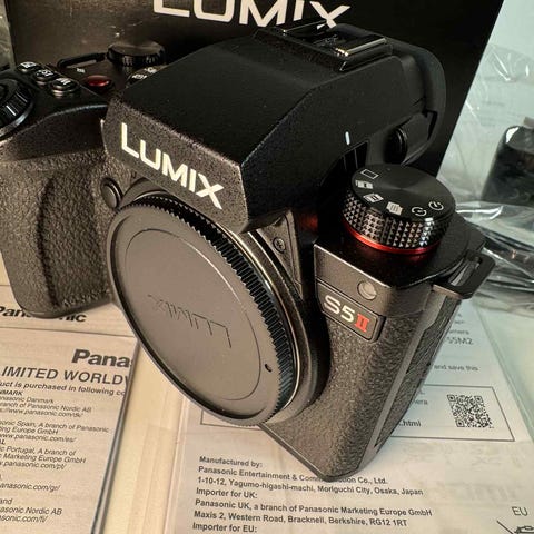 Panasonic Lumix S5D systemkamera. Digitalkamera med L‑mount enligt förpackningen. Kameran har vridbar skärm och elektronisk sökare. Levereras i originalkartong enligt bilderna. Lämplig för foto och video med kompatibla objektiv för L‑mount.