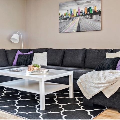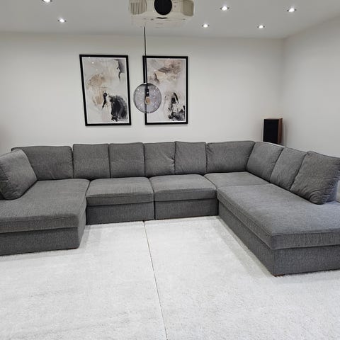 En stor och bekväm svart U soffa som passar perfekt i vardagsrum där utrymme, komfort och funktion står i fokus. Den rymliga utformningen med två schäslonger gör soffan idealisk för familjer, filmkvällar och sociala ytor. En tidlös färg som är enkel att matcha med olika inredningsstilar.