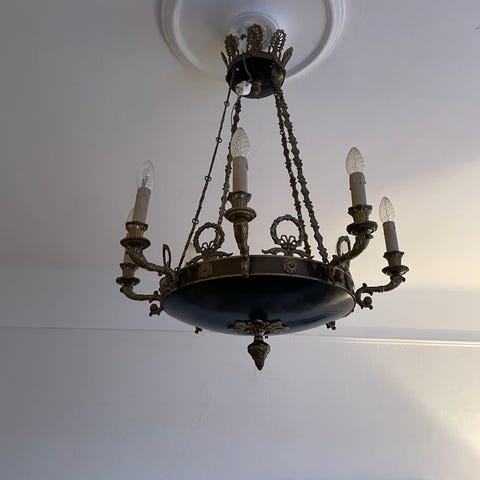 Liknande lampor i detta skick och med originalglas blir allt svårare att hitta. Handmålade glas från sekelskiftet nytillverkas inte idag.