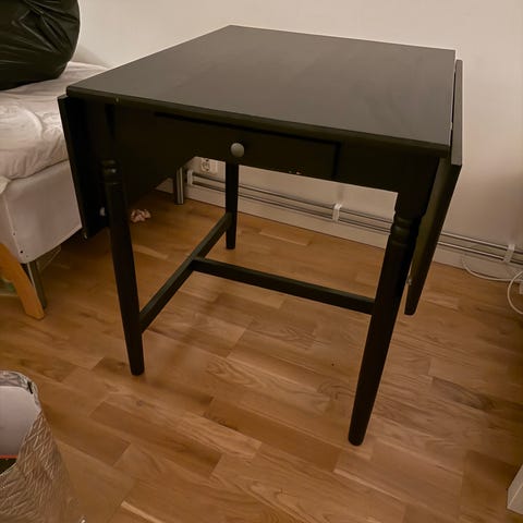 Svart sidobord i jugendstil (sekelskifte, tidigt 1900-tal). Stabilt men behöver kanske målas om?