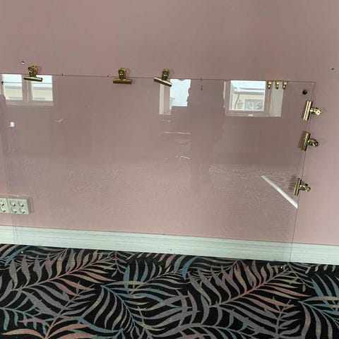 Förvaringstavla från Ikea, 56 × 56 cm, med tillbehör. Perfekt för hemarbetsplatsen men passar även i andra rum för att ha små saker nära till hands.