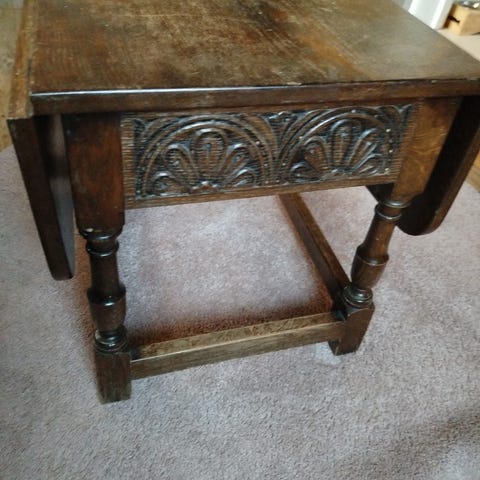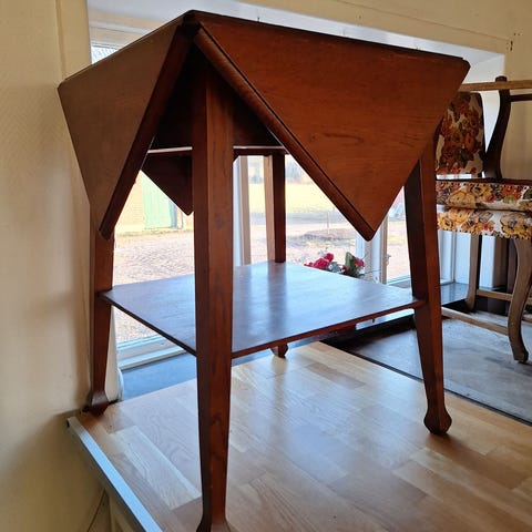 Äldre utfällbart munkbord (sidobord, lampbord, extrabord, avlastningsbord) i mycket bra skick. Jugendstil.