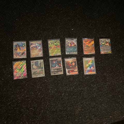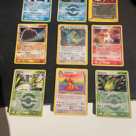 Pokémon samling spelkort med blandade motiv och figurer. Kort i olika färger och typer, både tränarkort och pokémonkort. Lämpliga för samling eller spel. Antal kort och exakta upplagor framgår inte av bilderna. Väger 2.9kg