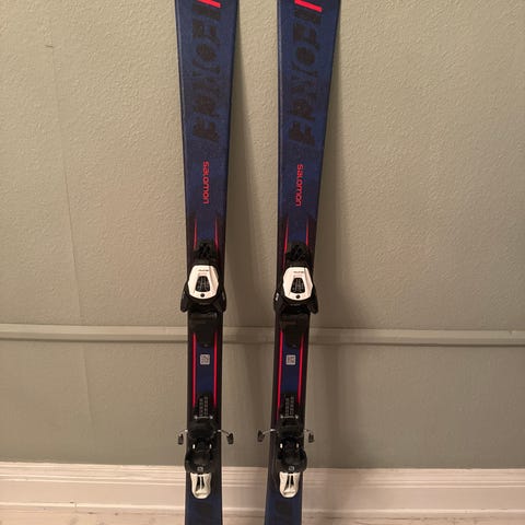 Atomic Edge alpinskidor 128 med bindningar vit/lila