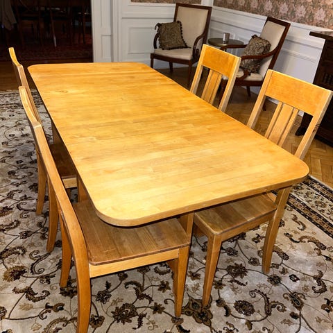 Det finns synliga märken på bordet men inte mycket, stolarna är fina men det är någon som blivit påverkad där man sitter. Dom går att fixa till med slipning etc om man är händig. Allt är inköpt på Stahlands för strax under 25000. Hämtas snarast på Södermalm. Pris kan diskuteras vid snabb affär